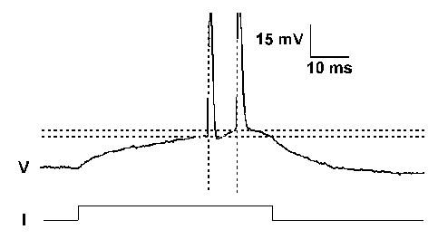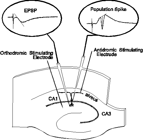 | Potentiation of population spike usually develops over a period of several minutes and in some cases up to 60 minutes | Potentiation of population spike is often immediate |